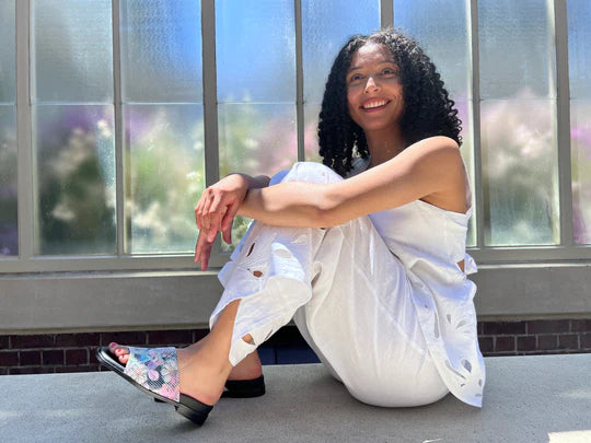 Step into style and comfort with the Cabello floral wedge sandal. Featuring soft Velcro straps...