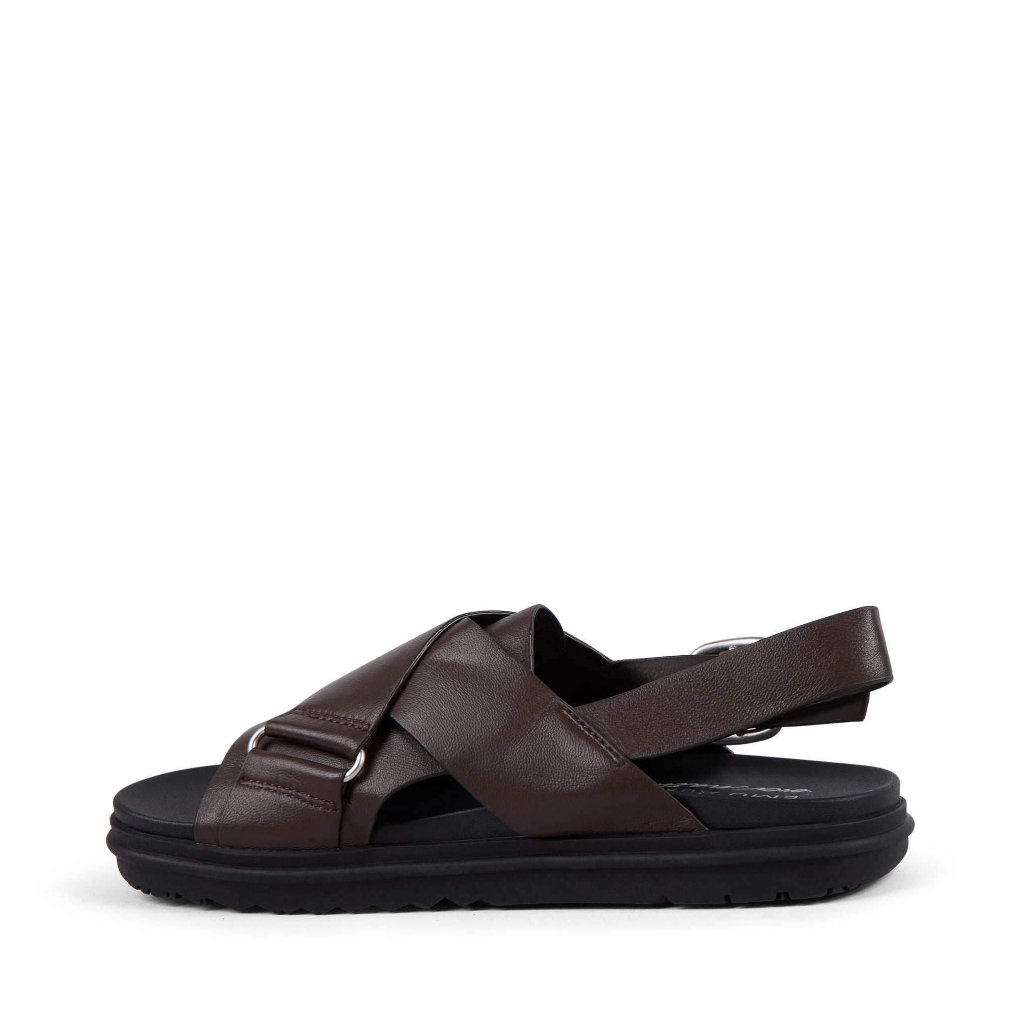 Classic with a twist, this leather crossover sandal features a secure back strap with an...